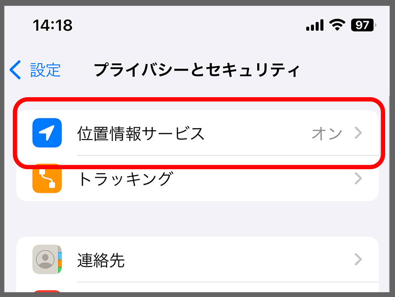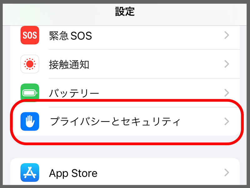 ※(iPhone の機種や iOS のバージョンにより「プライバシーとセキュリティ」は「プライバシー」の表示になっています)