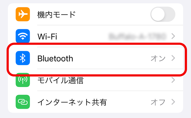 - iPhone等の iOS 端末の「設定」から Bluetooth を有効にします。