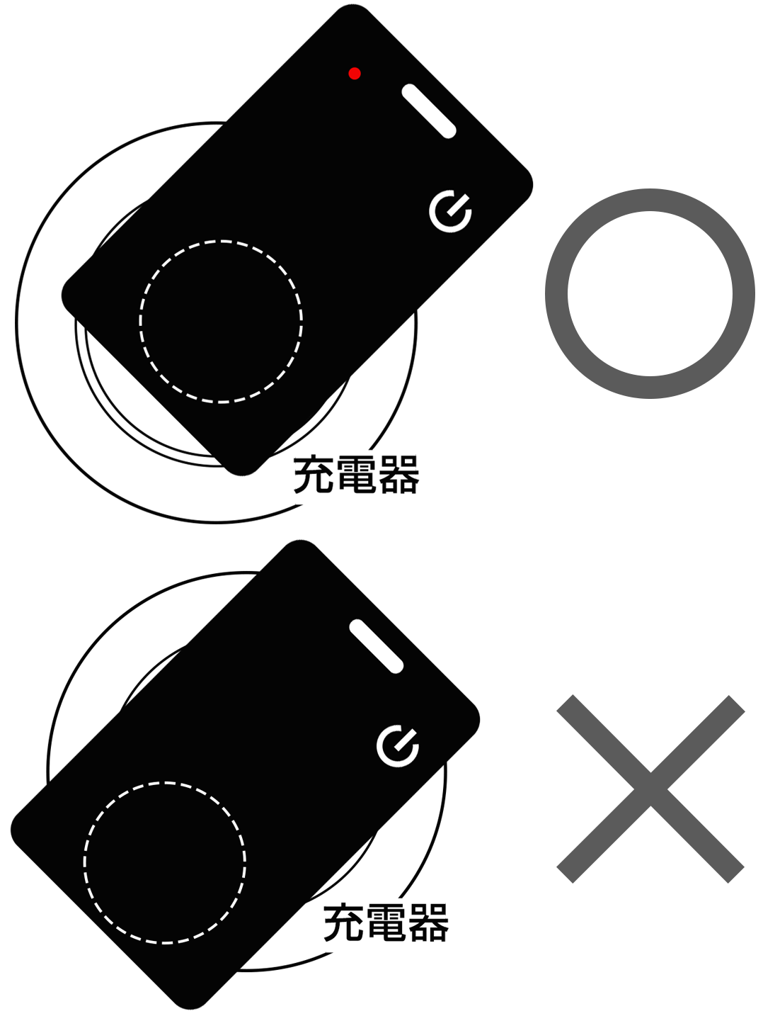 - Smart Cardの充電エリアをワイヤレス充電器の充電エリアの中心においてください。